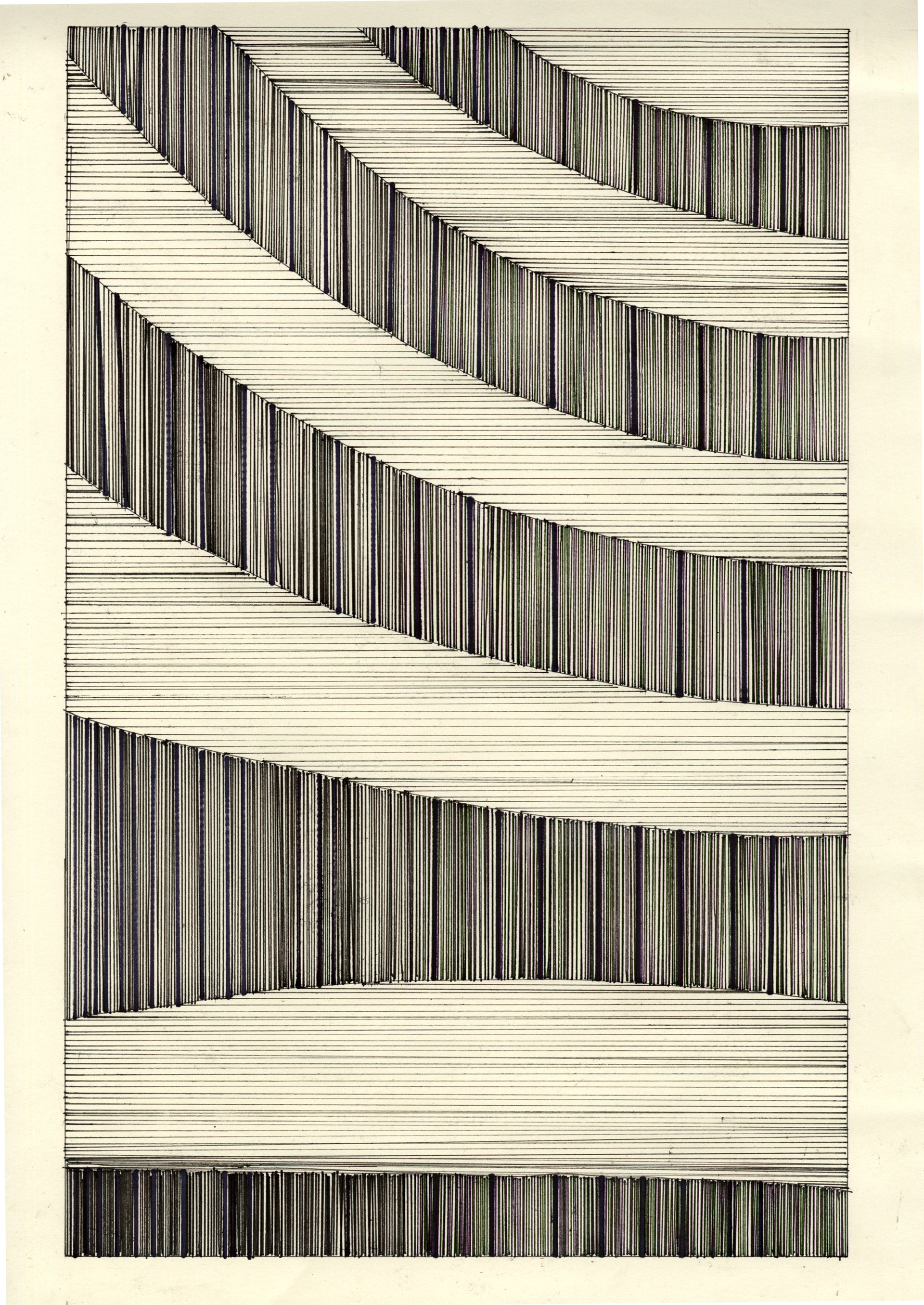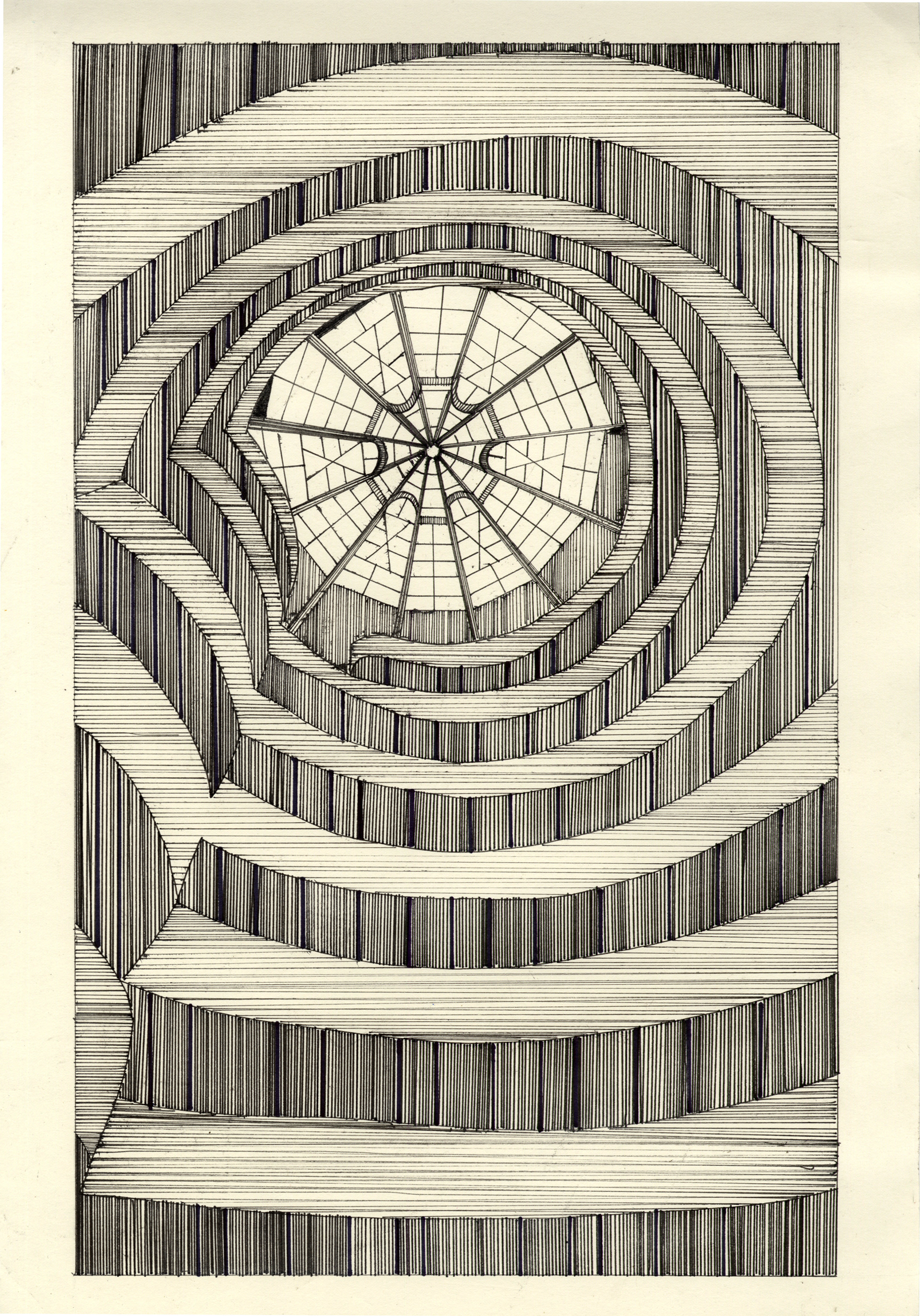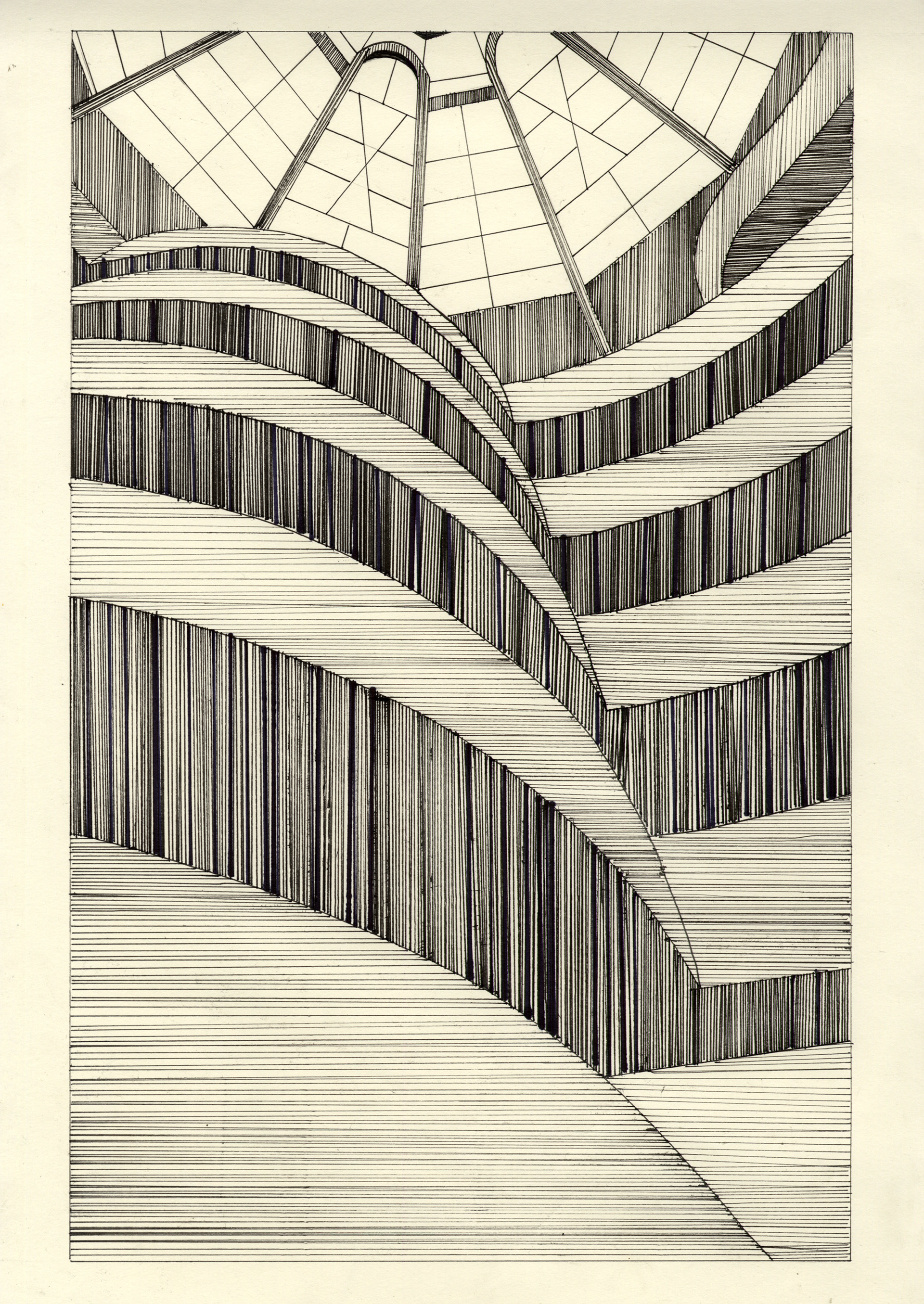 You can create many things with lines, from simple line drawings to using lines for shades and dimensions. I focus my work on architecture in New York City this semester. In doing research, I chose the Guggenheim Museum as a focal point. The Guggenheim Museum, designed by Frank Lloyd Wright, is known for its organic shapes. I started off by going to the museum and taking pictures of the structure and areas I would want to draw; after I simplified the picture by outlining shapes, I later filled it in with lines to show shade. In doing this, I created a set of three. I then moved on to working digitally and went in a different direction; instead of lines as the shade, I used different colors.